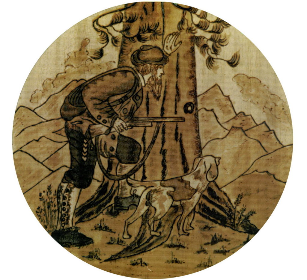 Motiv: Vordelader Pistole, Lasurdruck, Lackiert.Auf Wunsch auch mit Beschriftung