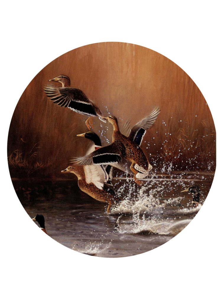 Motiv: Enten im Sonnenutergang, Lasurdruck, Lackiert.Auf Wunsch auch mit Beschriftung